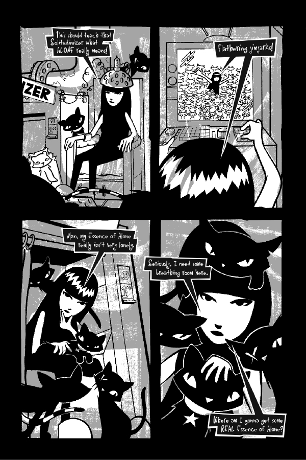 Emily has often been a lone voice of sanity in a completely wacky and confusing world, but this time, she seeks and finds the true nature of solitude. With or without her posse of clever black cats, strange spirits, and hip and unexpected guest stars, Emily's got what it takes to truly go it alone.