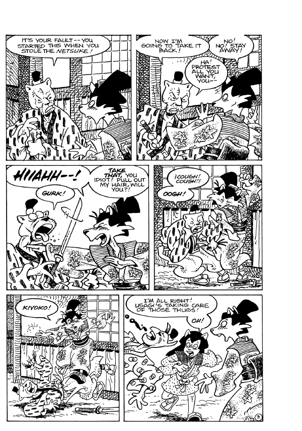 Kitsune's fast hands often cause trouble, but this time she may have gone too far, stealing a powerful charm from the wizard Hatakeyama. Now a pack of thugs are after her, and it's Usagi to the rescue! However, Kitsune falls under the wizard's spell and the entranced thief leads Usagi and Kiyoko deep into the mountains. How can they keep up with her when their way is blocked by magic?