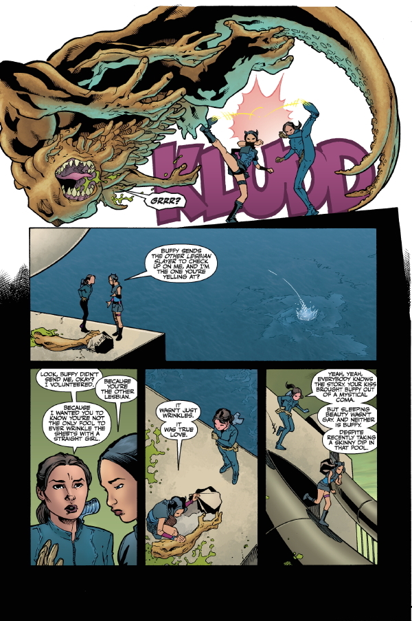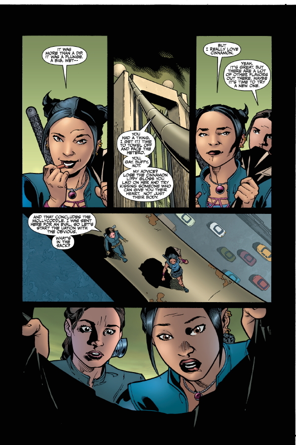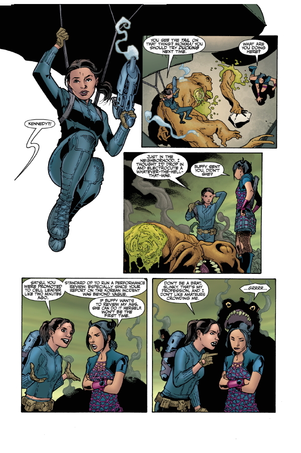 When Kennedy is sent to Japan to evaluate Satsu’s efforts as team leader, they are taken by surprise by some fierce furry creatures who want to do nothing more than destroy Buffy (surprise!), while Twilight remains the captain of the anti-Slayer ship.
