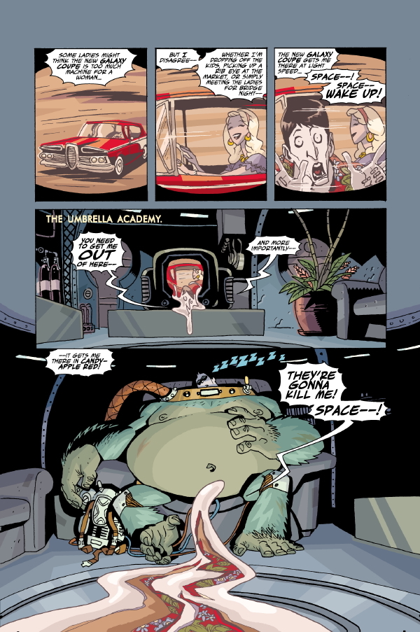 As Clare Boothe Luce once said, "No good deed goes unpunished." The Séance, ego bloated from having saved the world a few months ago, finds himself strapped in for a most unpleasant ride while the team runs in four different directions--because only four of the seven Umbrella Brats are currently mobile.
