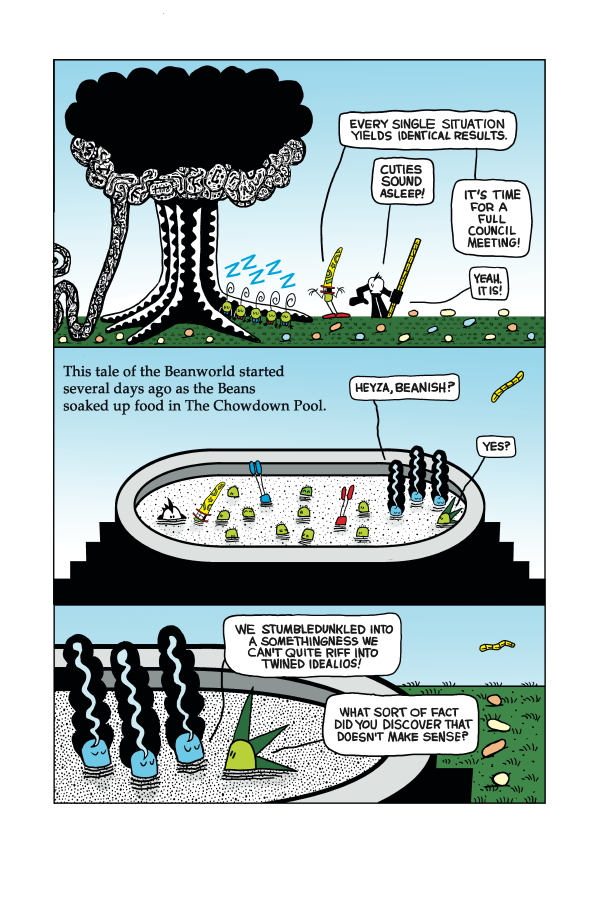 "One doesn't read Beanworld at all, one lives it. Beanworld draws you into its world and plays out in your mind. This is a rare feat in any medium, and a treasure in comics."