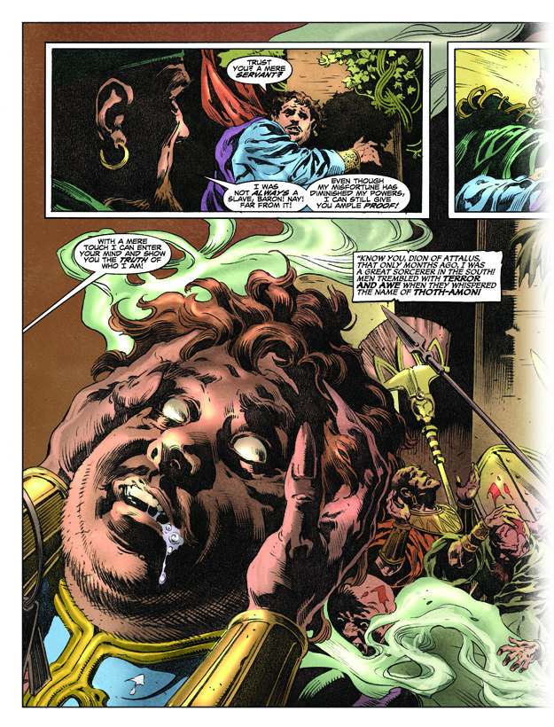 Conspirators move in the shadows as King Conan's troops move to quell a Pictish uprising, leaving the newly crowned king exposed to the machinations of four influential traitors who seek to wrest the crown from Conan's lifeless brow! But something even deadlier moves silently in the night, answering the call of the ancient serpent god Set. A faithful servant of darkness, the wizard Thoth-Amon toils in Aquilonia and prays for a rebirth of power that will unleash untold evils!