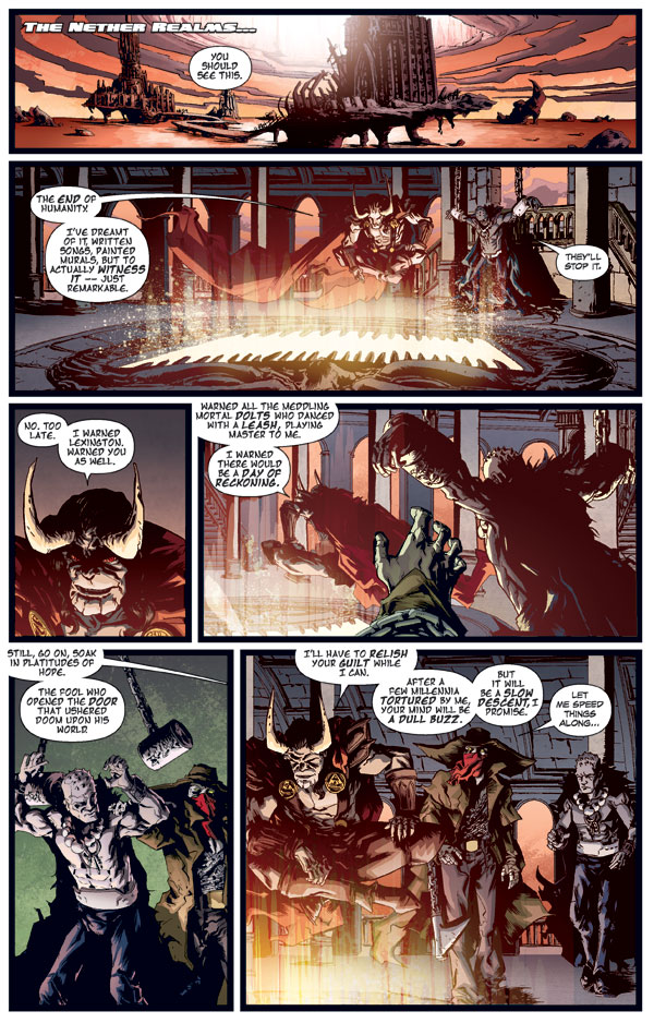 With the hammer of Thor in his possession, the Smiling Man sets out to remake the world in his image, unless Codename Black can stop him. Dead Lexington's manipulations force Prairie Ghost and Brother Occult to choose between mass murder and the fate of all life on Earth. Zeus sends his only daughter, Divinity, to destroy her former allies and obtain the hammer for Olympus. Soldier American finds himself a POW of Wolfsangel -- in 1942. The deck is stacked; there is no possibility of victory -- the end draws nigh for the End League. Brought to you by the super champion of America, Rick Remender (Punisher: War Journal, Fear Agent), with art by groundbreaking rising star of comic bookery Andy MacDonald (Punisher: War Journal, Miss America).
