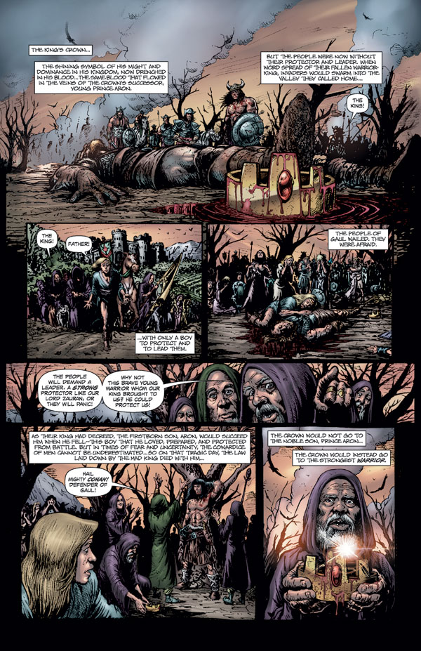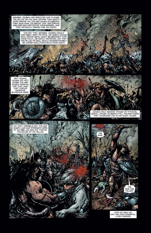 Taking place between the Cimmeria and Black Colossus story arcs in the Conan the Cimmerian monthly series, this issue is perfect for both longtime readers and for intrigued fans looking for a dynamic one-shot punch from the visceral and cerebral Darick Robertson.
