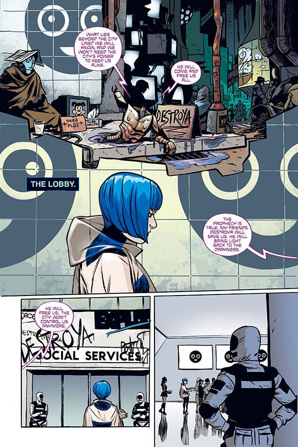 Delve into the life of Korse, one of Better Living Industries’ most productive and violent Scarecrows! See the trials and tribulations faced by Blue, an android down on her luck! Meanwhile, find out who—or what—survived the original Killjoys’ deadly confrontation in Battery City.