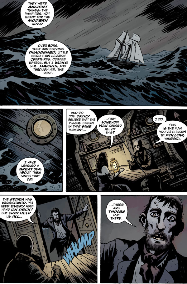 After a furious storm rips apart their ship, Baltimore and Vanessa wash up on an island shore in the midst of a graveyard of submarines. While taking refuge they stumble upon a ruined plague ship--a vessel used to burn vampires--now entrenched in a grotesque and dangerous fungus.