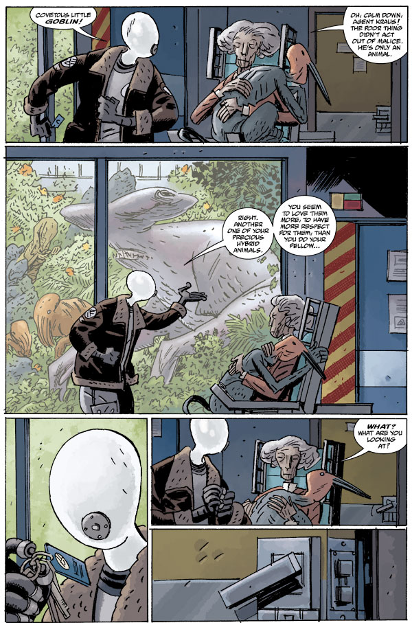 Paranoia and suspicion plague members of the B.P.R.D. as agent Kate Corrigan, strained over the new UN control, must also play mediator between a manipulative Panya and a broken down Johann, devastated over the giant body in a vat he can't have. Meanwhile, Abe breaks from the team and investigates the horrors of the Northwestern woods.