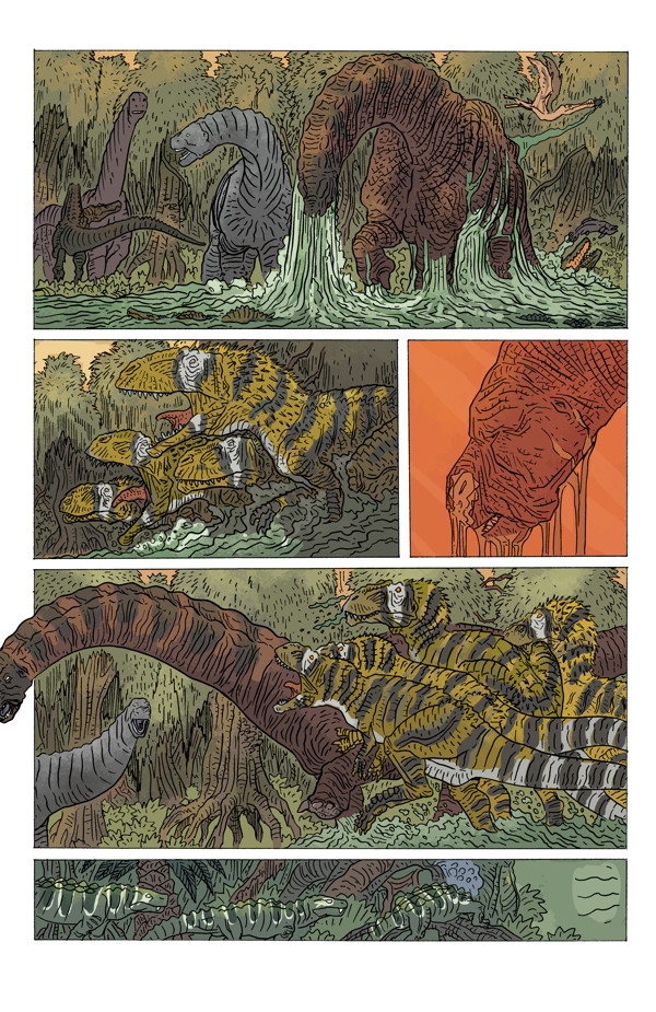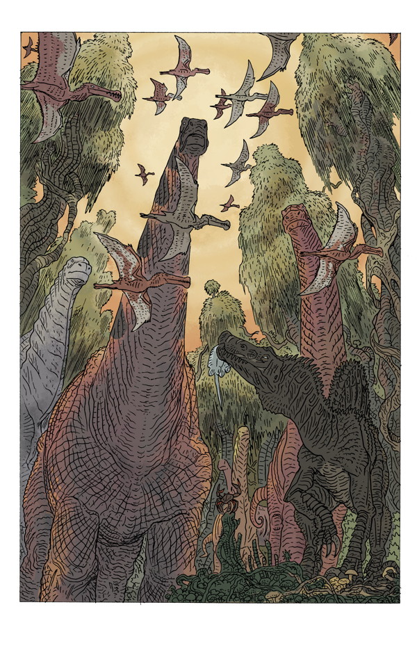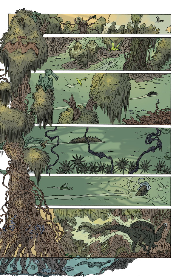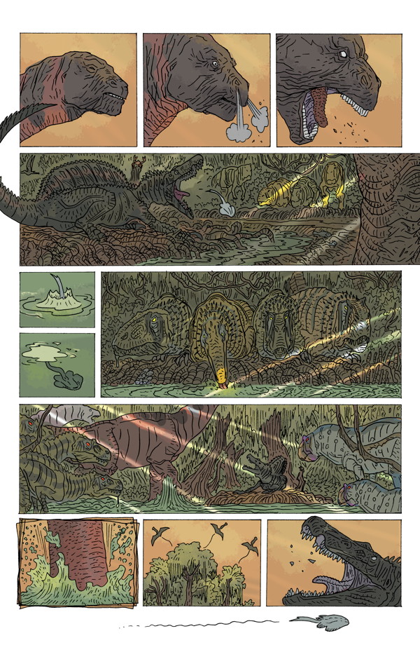Ricardo Delgado’s latest tale of survival and the cycle of life in Cretaceous Africa! Will the lone, deadly Spinosaurus aegyptiacus survive to see another day? With colors by Ryan Hill (House of Night, Judge Dredd: Mega-City Two), this powerful, beautifully detailed adventure comes to a dramatic finish!