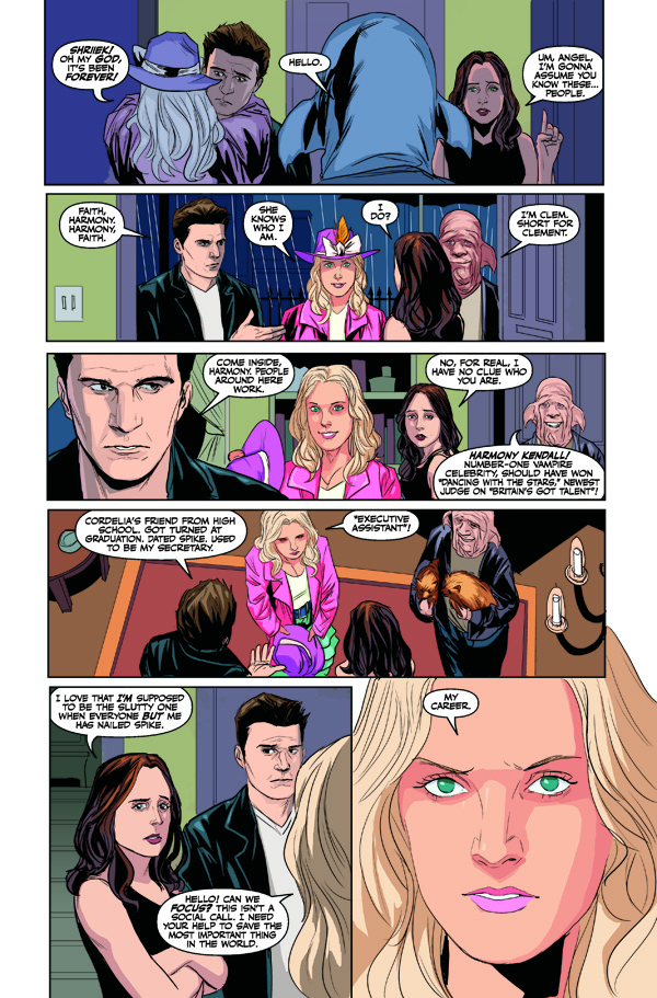 It's a dark and foggy night in London, and Angel and Faith are about to encounter a most unexpected visitor. Superceleb vampire Harmony Kendall returns! When a stalker threatens to expose one of Harm's misdeeds, she solicits the help of wayward heroes Angel and Faith. With her little pups, her friend Clem, and her Hollywood entourage by her side, Harmony is taking the UK by storm!