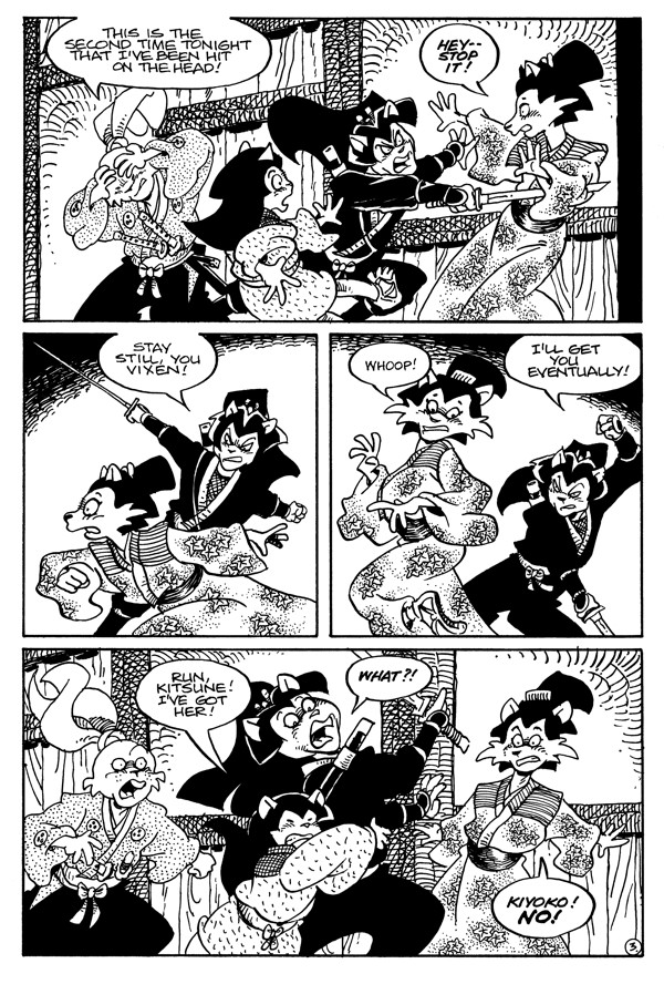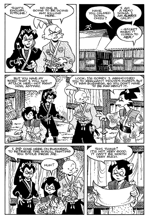 Everyone seems to want Kitsune dead tonight as the secret of merchant Inouye’s stolen scroll is revealed! And Usagi’s allies and enemies change by the minute when he learns of an old enemy’s role in the intrigue!