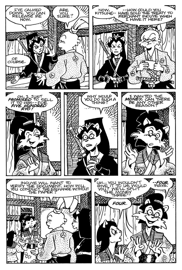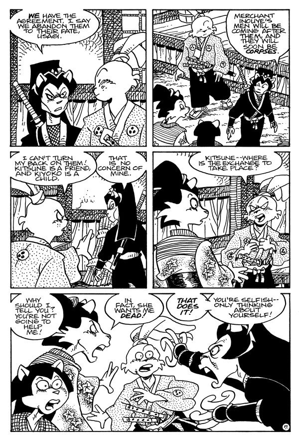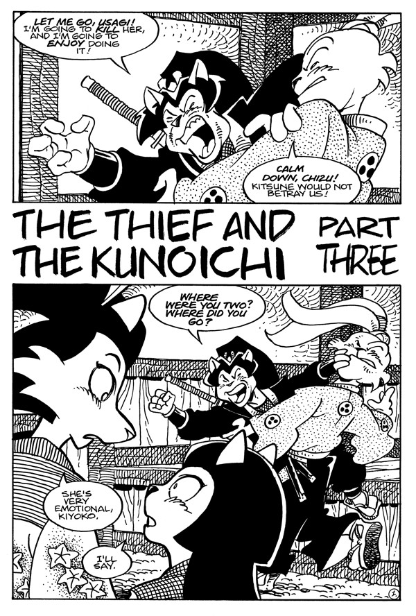 The shadow lord Hikiji’s latest conspiracy pits the rabbit ronin’s friends against one another, as “The Thief and the Kunoichi” concludes! One of them may die tonight, unless Usagi, Chizu, and Kitsune can stop a secret treaty!