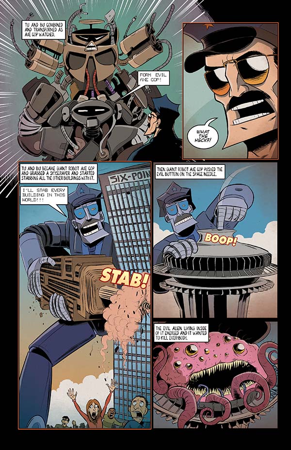 * A hilarious new Axe Cop story, exclusive to print comics!