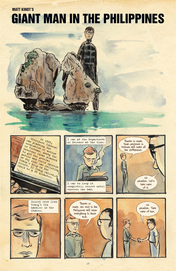 The most acclaimed graphic novel of 2009 returns! Some episodes from the life of Craig Pressgang were too sensitive even for the pages of 3 Story: The Secret History of the Giant Man, but now the full truth of his years as a spy can be told! Lending new meaning to the phrase "hiding in plain sight," Craig's missions to Paris, Cairo, and the Philippines make Secret Files an essential companion to the 3 Story graphic novel, as well as a perfect standalone introduction to Matt Kindt's touching history of the Giant Man. Collects all three Giant Man stories from MySpace Dark Horse Presents.