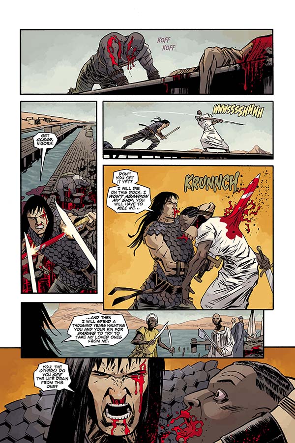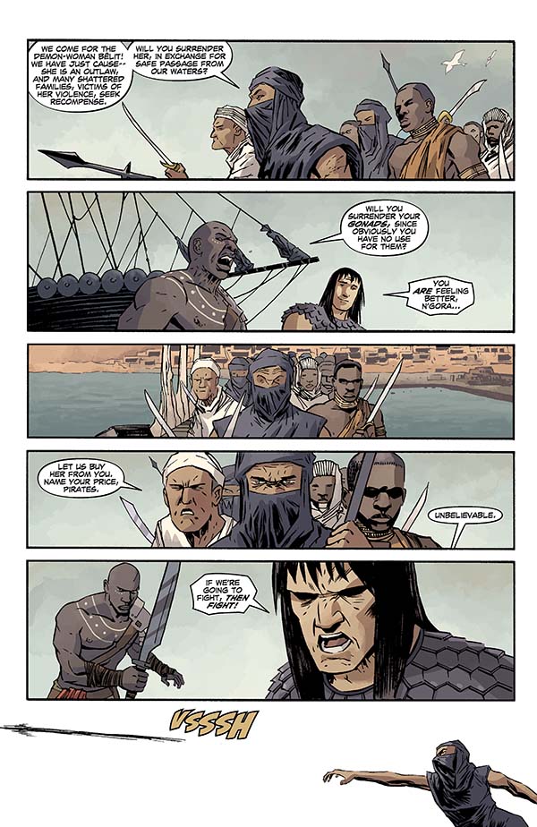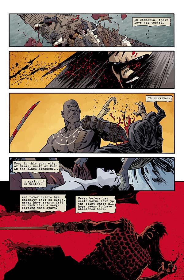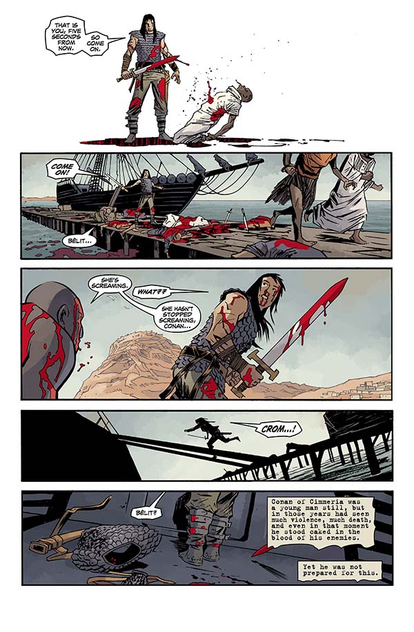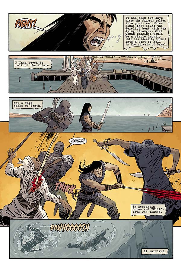 Unable to obtain a cure for the deadly illness afflicting Bêlit and the crew of the Tigress, Conan feels the fear of loss for the first time. With no hope and a broken heart, the Cimmerian is horrified at how appealing he finds Bêlit’s order to abandon the ship and his queen! The haunting conclusion of “The Death”!