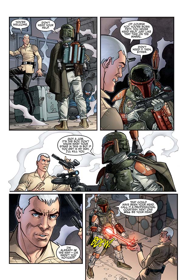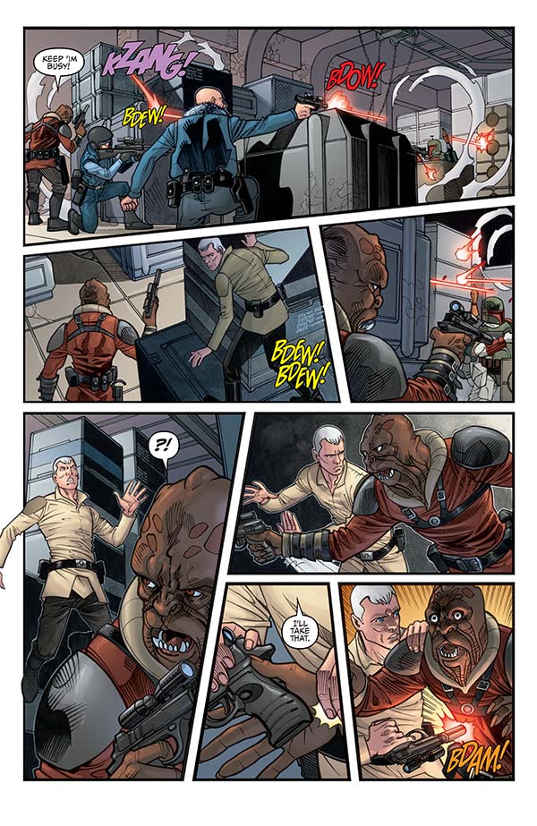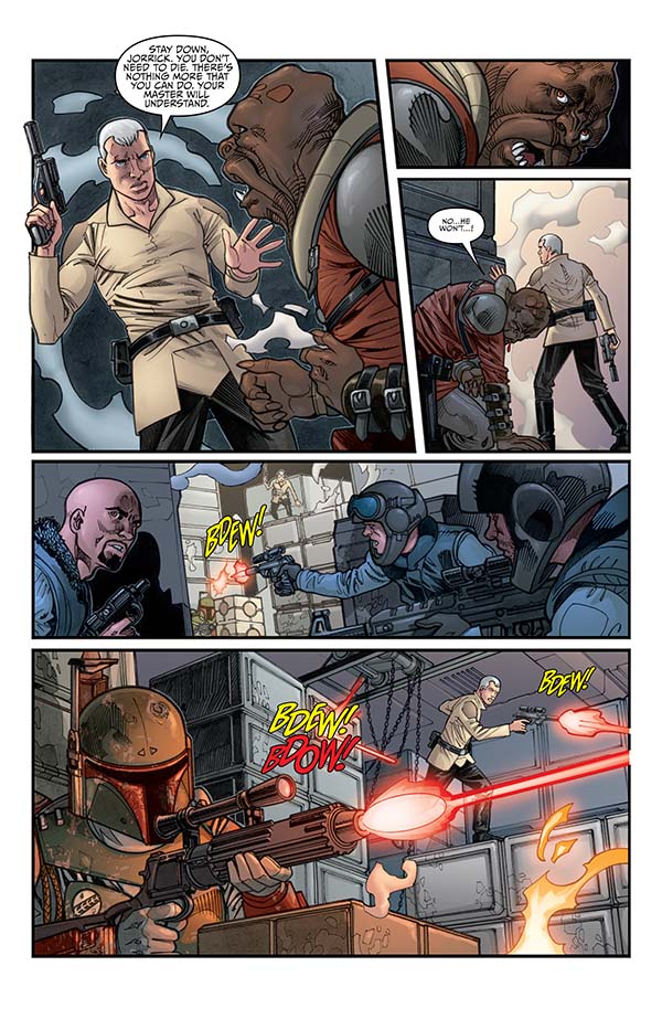 Everyone—including Boba Fett—is after the young Count Dooku. As Cross and the Count’s loyal security guard attempt to whisk the boy to safety, they are surrounded by enemies! In the past, Cross had the power and authority of the Empire behind him. Now he has nothing but his fists!