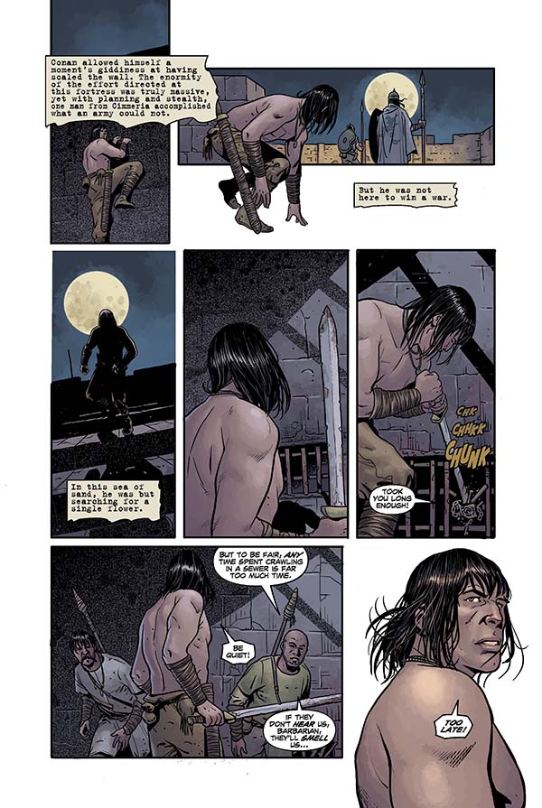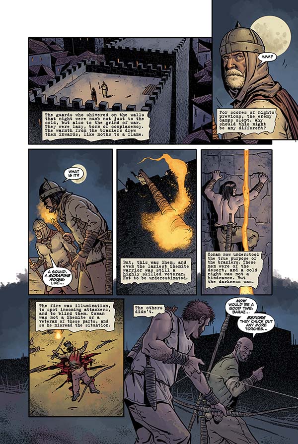 Brian Wood and Mirko Colak test Conan and Bêlit’s love like never before! Under the heat of the Shemite sun, Conan leads a suicidal raid on the fort at Ramah En Ram, while inside Bêlit heads up the fort’s defense! The mystery of Bêlit’s precense inside deepens, even as it drives Conan mad with jealousy and rage!