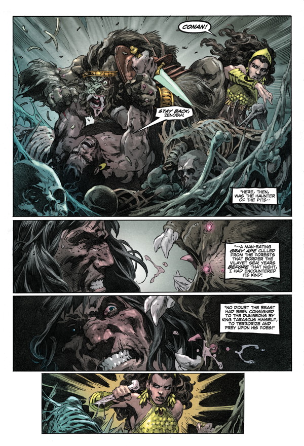 Aided by the brave harem girl Zenobia, the deposed barbarian king escapes a gruesome dungeon using both stealth and brute force—only to come face to face with one of his ruthless captors! Conan seeks to reclaim his crown, but he’ll have to defeat an army backed by an evil wizard first!