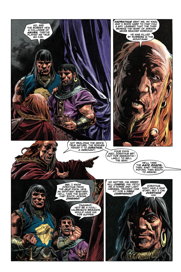 Conan’s only hope to defeat the vile wizard Xaltotun and reclaim his throne is to find and recover the Heart of Ahriman, but he isn’t the only one seeking this magical jewel! Conniving thieves stay a step ahead—and in dark forests, beings fouler still stand in the barbarian’s way!