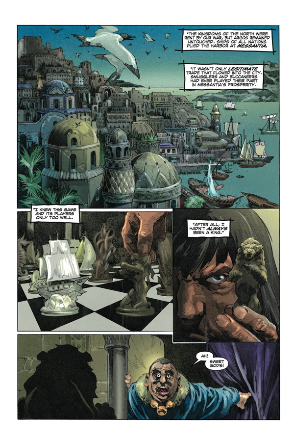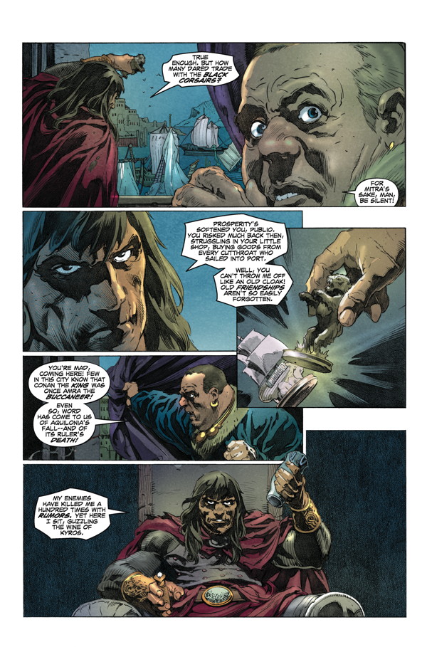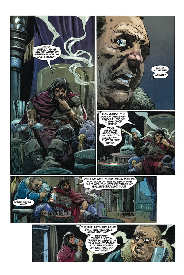 In the port city of Messantia, the deposed, fugitive Conan could uncover the key to regaining his throne—or he could get a knife in the back! Conan follows a lead to a lost relic, revisits an old friend, and finds that he’s not alone in his risky hunt for a missing, magical gem.