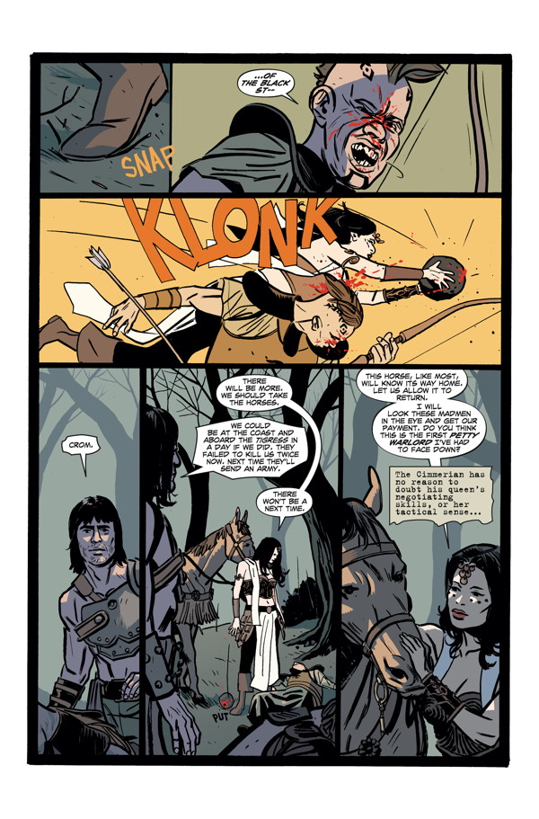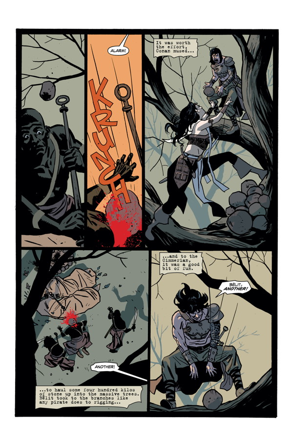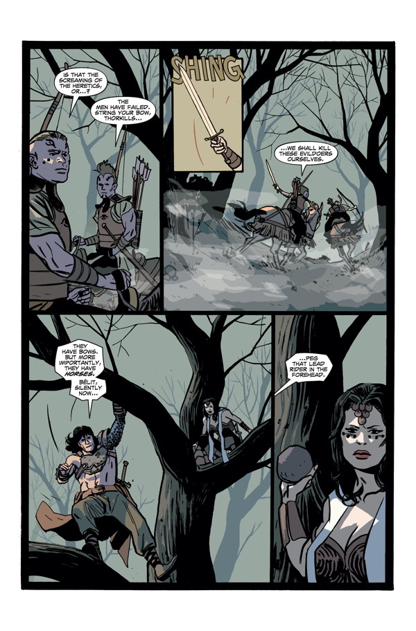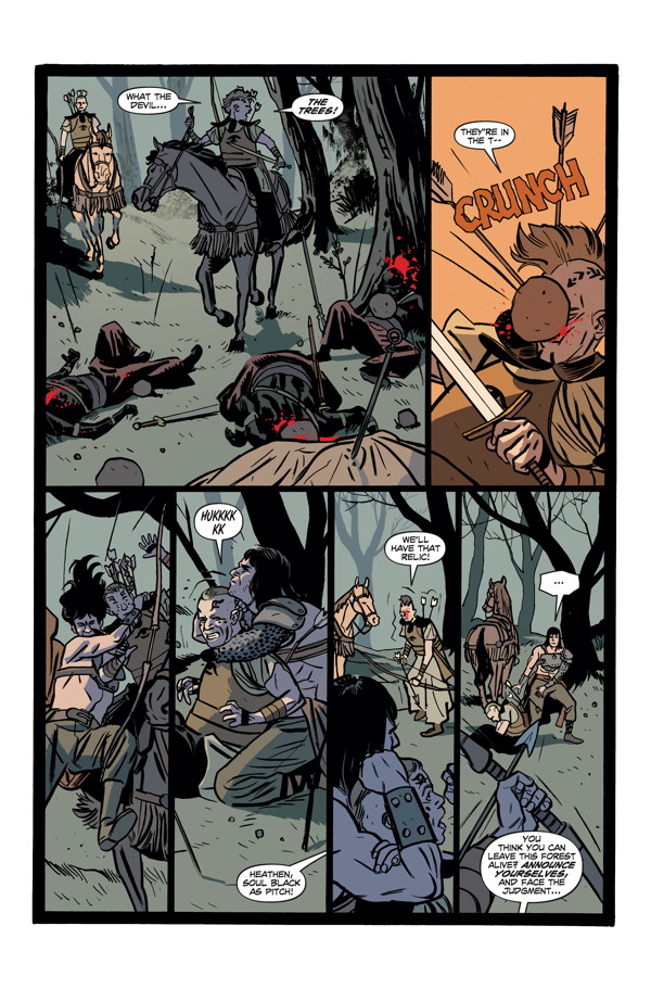 A twisted religious order targets the heathens Conan and Bêlit, who flee with a relic of immeasurable value. Mad warrior monks pursue the couple across a mazelike landscape, cutting off every avenue of escape. With no other options, Bêlit looks to the mysterious item, hoping to find some salvation within.