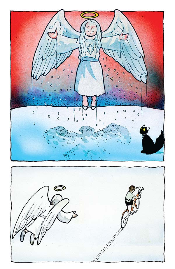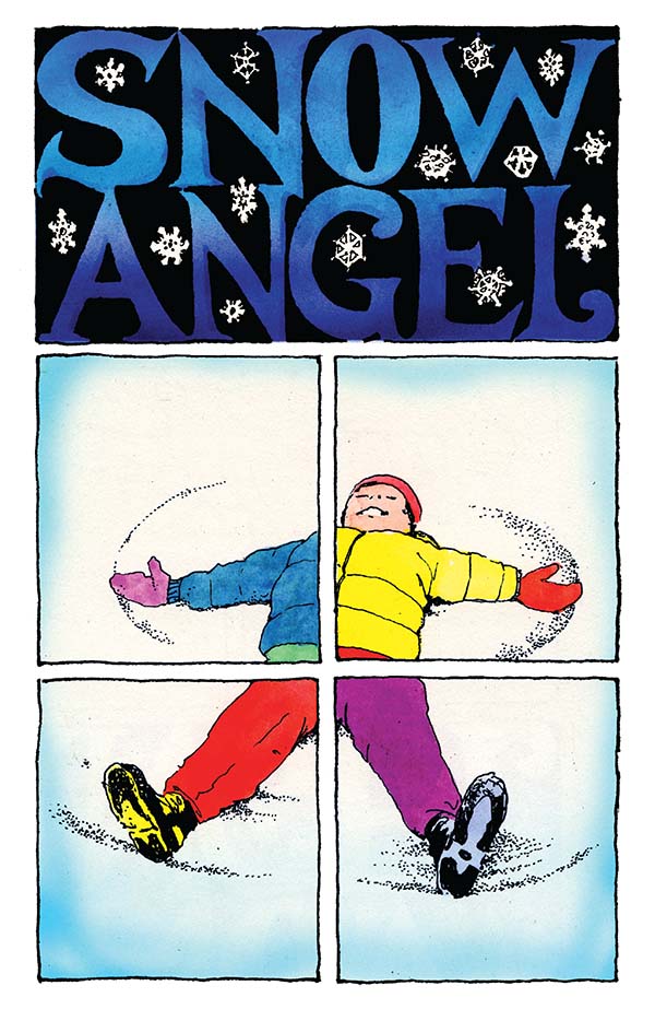 David Chelsea creates a superhero like no other: an ordinary little girl who becomes a crime-fighting cherub whenever she makes an angel in the snow! Snow Angel faces jaywalkers, bicycle thieves, menacing dogs, and other dangers! This special, all-ages one-shot also includes “The Kids’ Movie”—an all-new, four-page masterpiece!