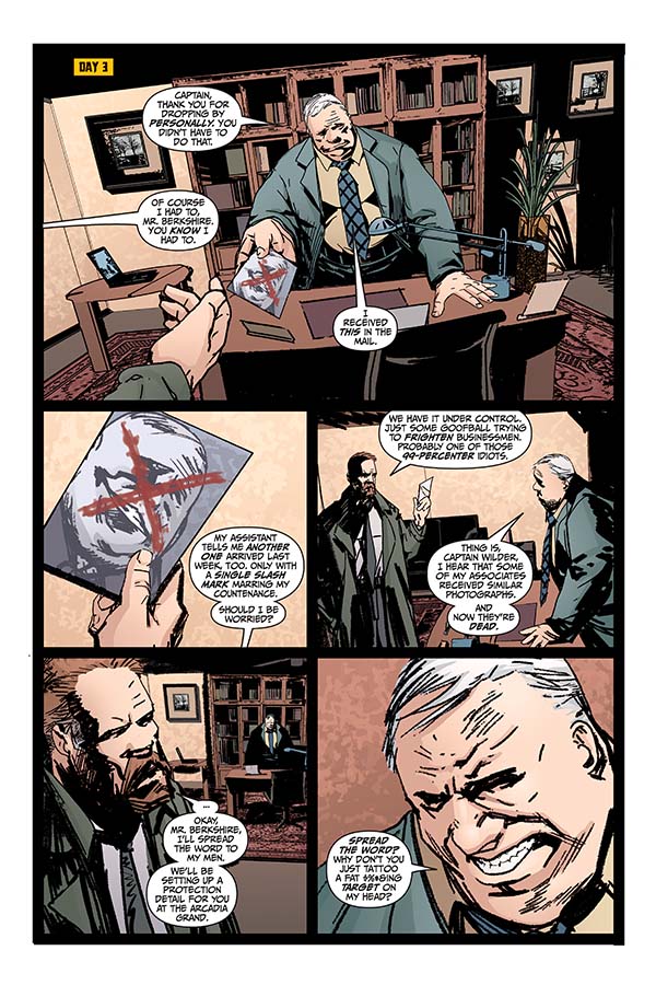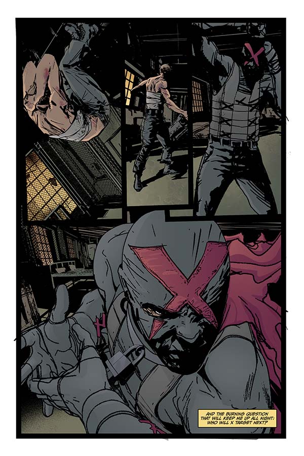 The enigmatic vigilante X has shattered Arcadia’s criminal triumvirate, the Three Pigs, and fixed his eye on an even tougher target. But with the police department AND the crime establishment teamed up against him, muckraking blogger Leigh Ferguson may be X’s only ally! The brutal story of Dark Horse’s bloodiest hero begins anew!