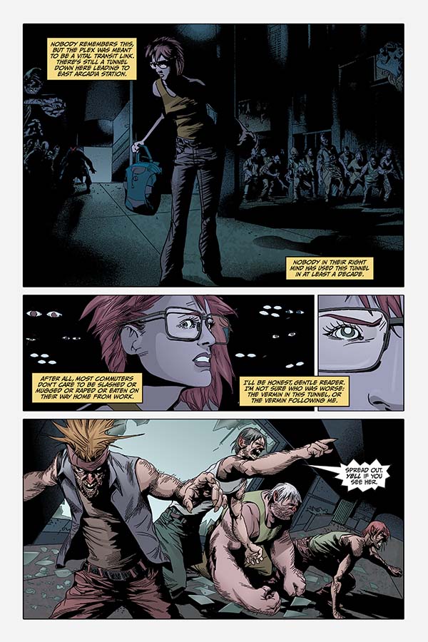The vermin of Arcadia’s underworld chase Leigh into a literal urban maze . . . and what’s waiting at the end ain’t cheese! A revived Berkshire’s got a beautiful new face and an appetite for revenge, mobilizing the entire police force against X.