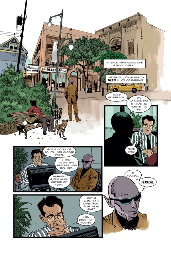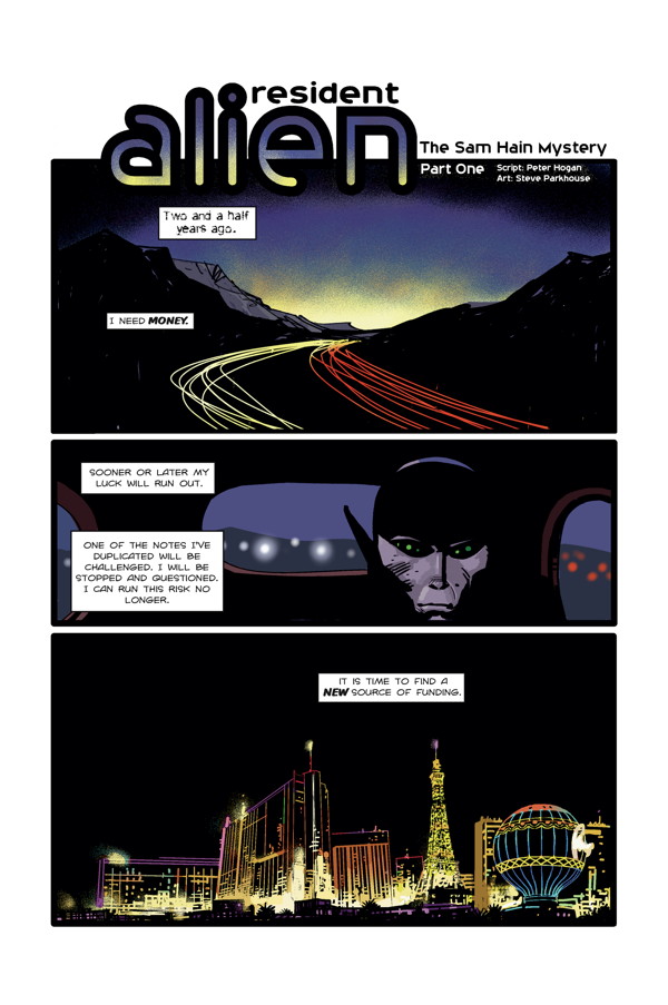 A stranded alien scientist hides out in the sleepy town of Patience, Washington, while federal agents begin to close in on him. Secrets about his home planet—as well as his first months on Earth—are revealed! Peter Hogan (Tom Strong) and Steve Parkhouse (The Bojeffries Saga) return to their unique science-fiction/mystery series!