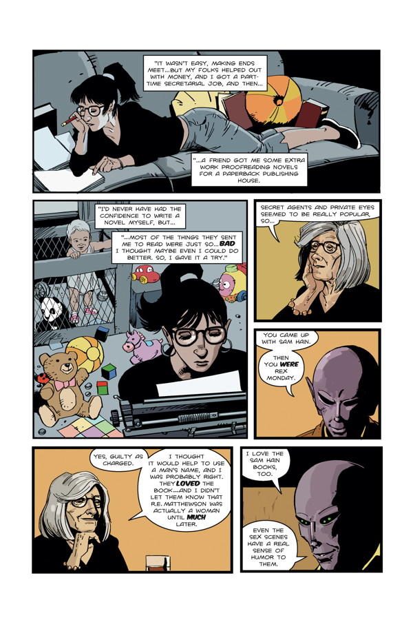 Seeking the truth behind a decades-old murder in the seemingly sleepy town of Patience, Washington, the stranded alien known as Dr. Harry Vanderspeigel learns a few lessons in human nature and forgiveness. A unique science-fiction/murder-mystery mash-up by creators Peter Hogan (Tom Strong) and Steve Parkhouse (Milkman Murders)!