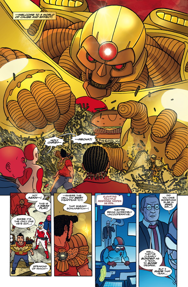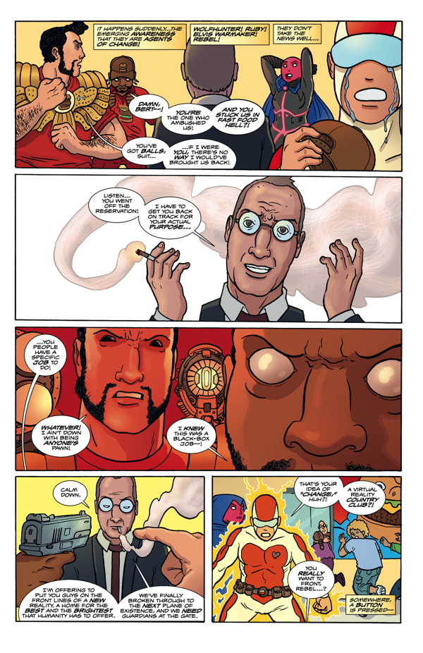 Things come to a head in the penultimate issue of the comics event of the year! The Agents of Change buck authority, but are they ready for the consequences? Frank Wells faces his demons! And Amazing Grace engages an alien menace in a cosmic battle royal!