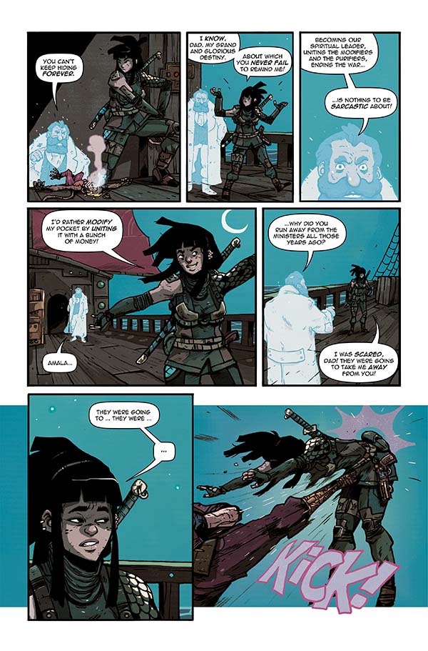 A behemoth pirate ship is captained by a pirate with a fat price on his head. And out for that head is Amala, Naamaron’s greatest swordfighter (according to Amala). The odds are against her, but that’s the fun . . . if only the ghosts of Amala's past would shut up and get out of the way!