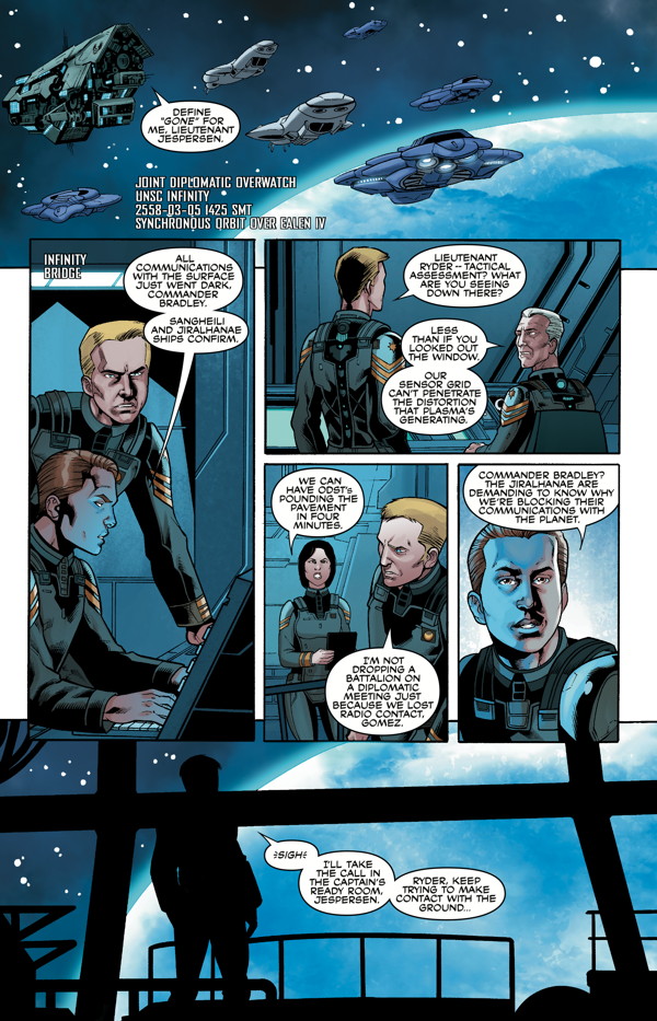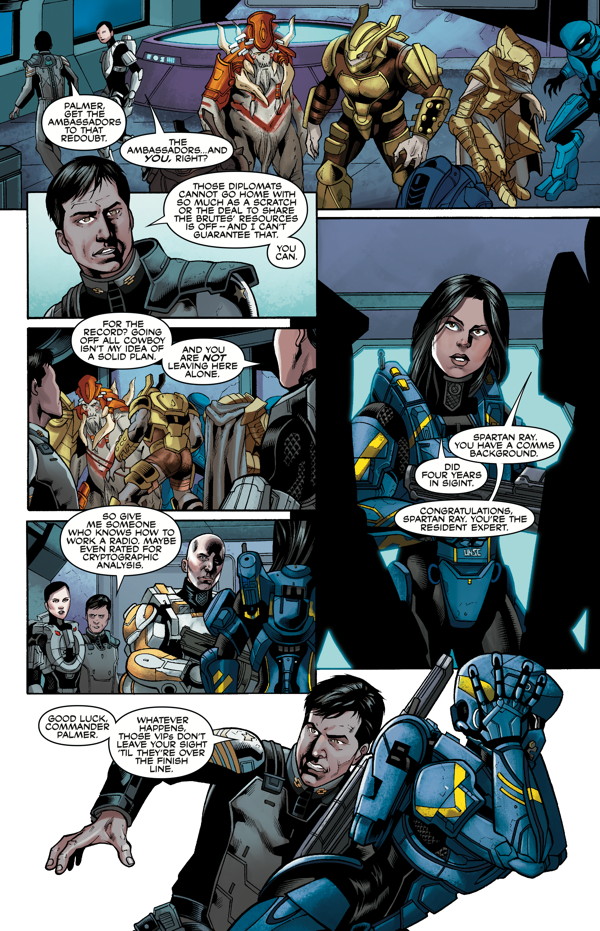 As Sarah Palmer fights to get the Arbiter and the Brute Ambassador to safety, Captain Lasky sneaks behind enemy lines to reestablish communications with the UNSC Infinity. Their plans for escape are jeopardized, however, by a turncoat in their midst!