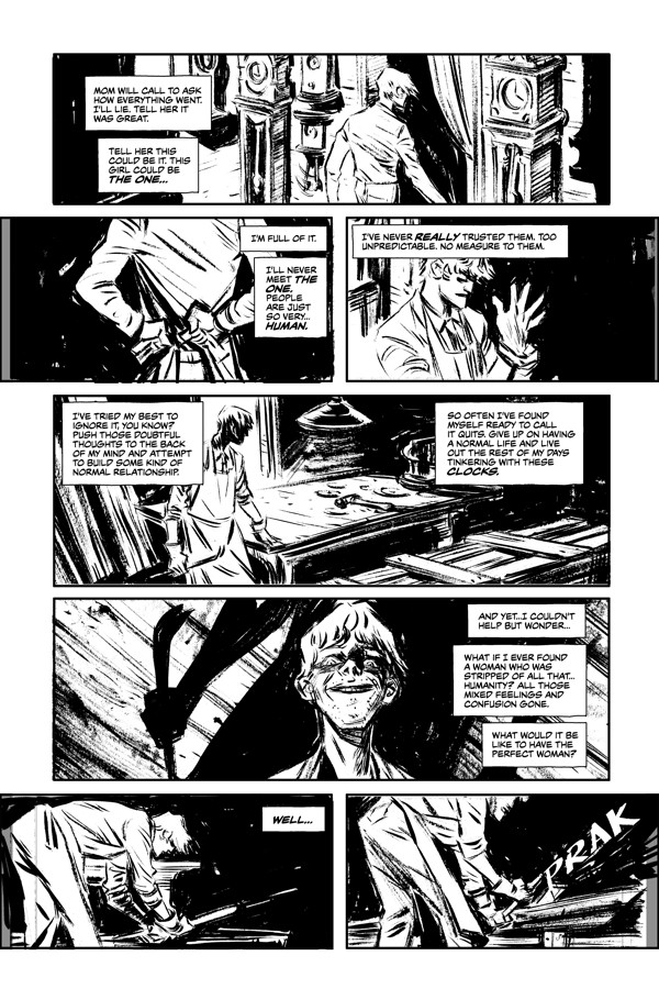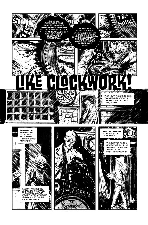 It’s a sickening sweet sixteen! Join Uncle Creepy for some sensational scares from a cavalcade of cursedly clever creators! Rachel Deering and Vanesa R. Del Rey wind up a lovesick mechanical monstrosity, and Ted Naifeh gives a lurid lesson in blackmail and bewitching bedlam! It’s a fright delight!
