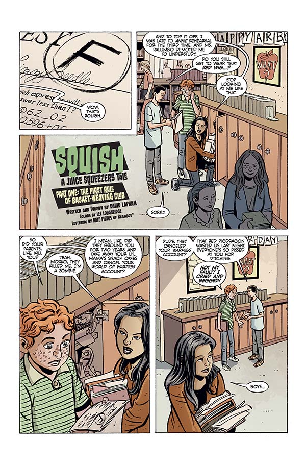 Meet the Juice Squeezers: a group of elementary-school kids tasked with secretly keeping their small town safe from a horrible, underground epidemicwritten and drawn by David Lapham! Learn about a vampire couple during the time of the Black Plague in Steve Niles and menton3s The Nosferatu Wars! Join bounty hunter Mercy St. Clair on a vacation gone horribly wrong in Ron Randalls Trekker!
