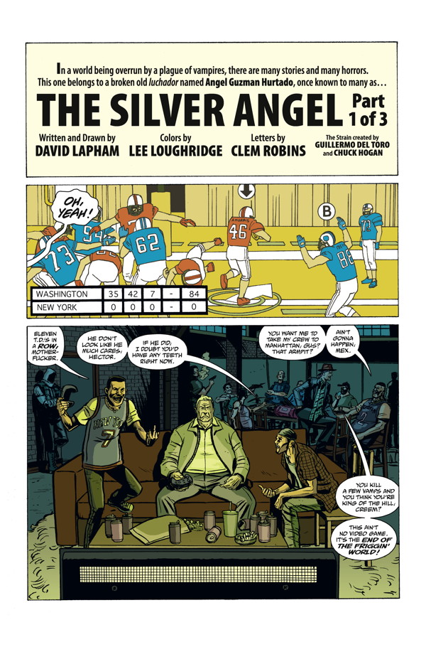 Read a new tale, written and illustrated by David Lapham, featuring luchador revenge on fearsome vampires in the world of Guillermo del Toro and Chuck Hogan’s The Strain: The Fall! Neal Adams’s Blood returns in part one of a massive two-part finale! And read an original tale from the world of the upcoming OGN Sabertooth Swordsman!