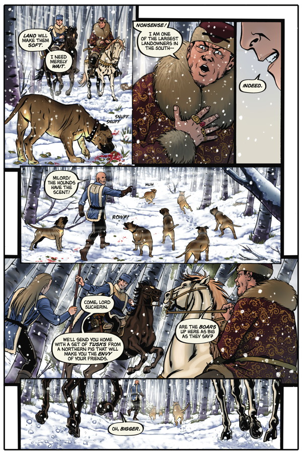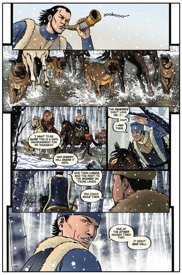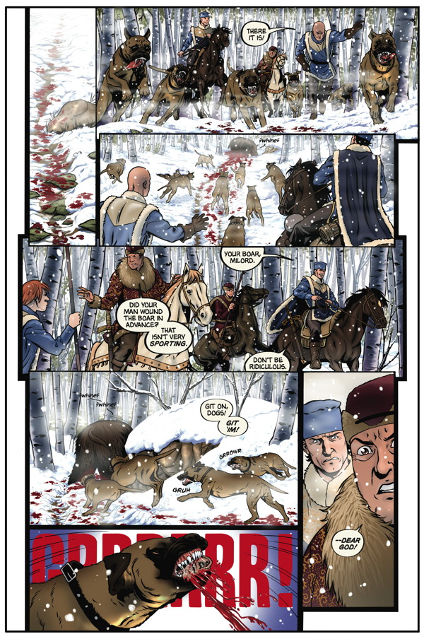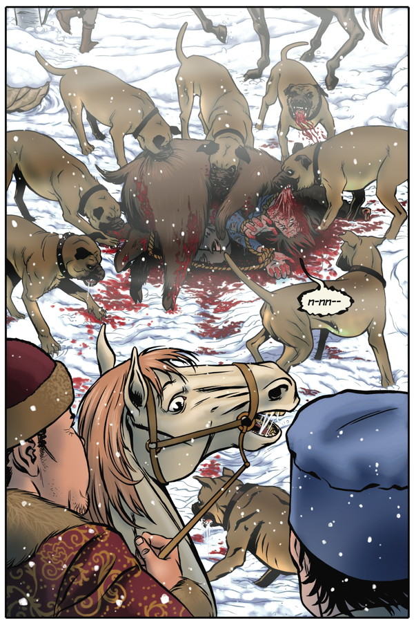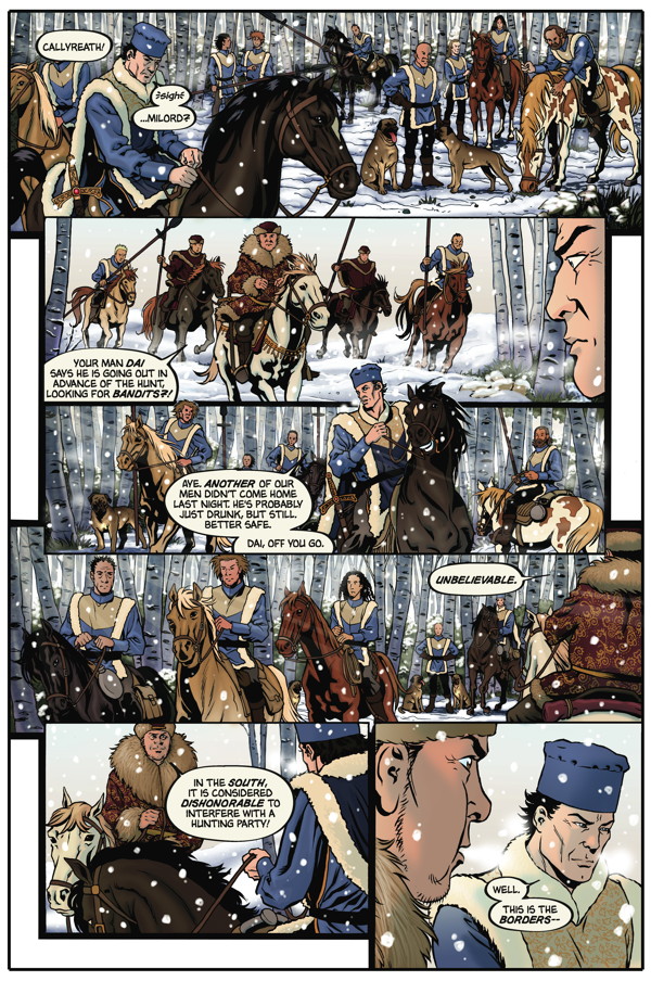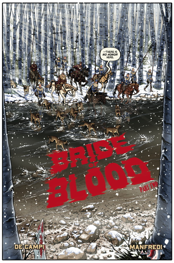 Clad in her fallen brother’s armor, massacre survivor Branwyn vows to repay every drop of blood that was spilled during the slaughter of her wedding party. But her mission turns even more horrific than expected when the true authors of her torment are revealed in the grisly conclusion to “Bride of Blood”!