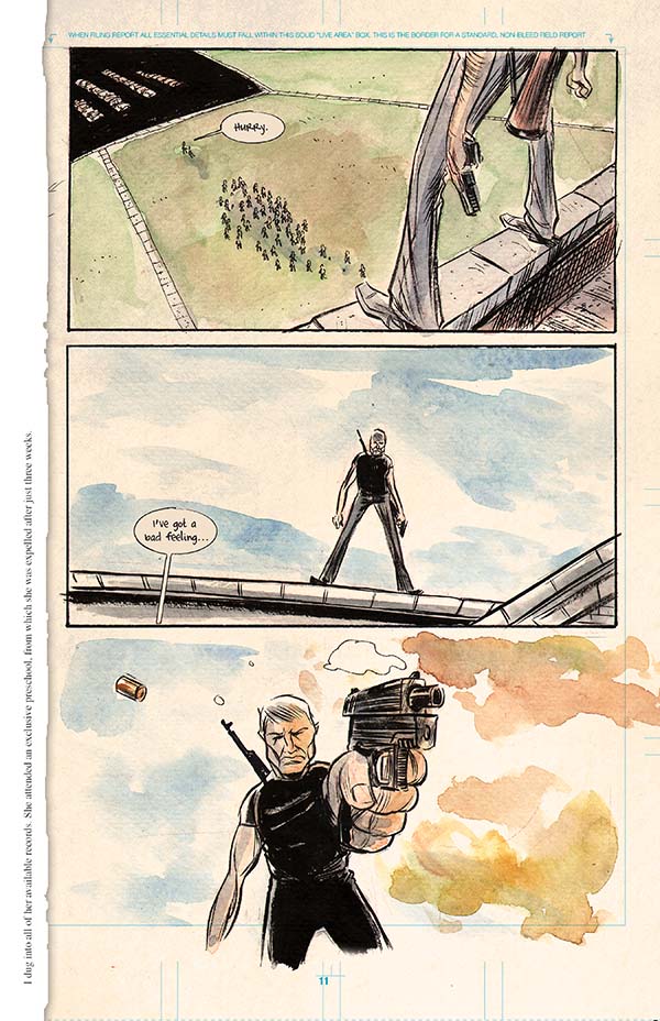 The psychic-spy agency Mind Management is being rebuilt, and Henry Lyme, the agent who brought it down the first time, will do anything to stop it! The next stop in Lyme’s recruitment drive brings he and investigator Meru to a quiet university where another defector teaches, but when the agents on their tail arrive, everything goes to hell! More secrets come out and the danger rises as MIND MGMT’s second arc heats up!