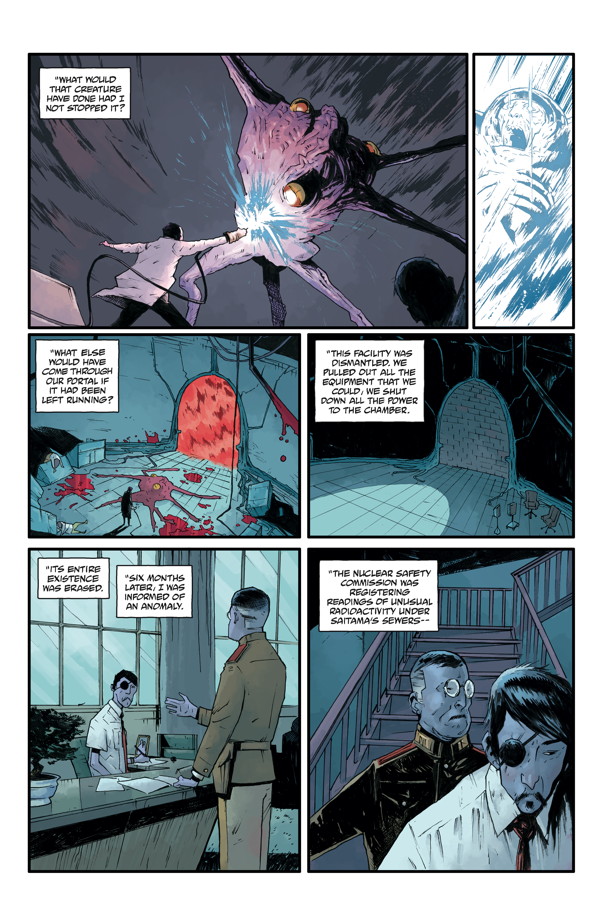 Johann travels to Japan to fight giant monsters, but what he discovers is even more disturbing. A man with no brain has been drawing pictures . . . and they tell a terrifying story.