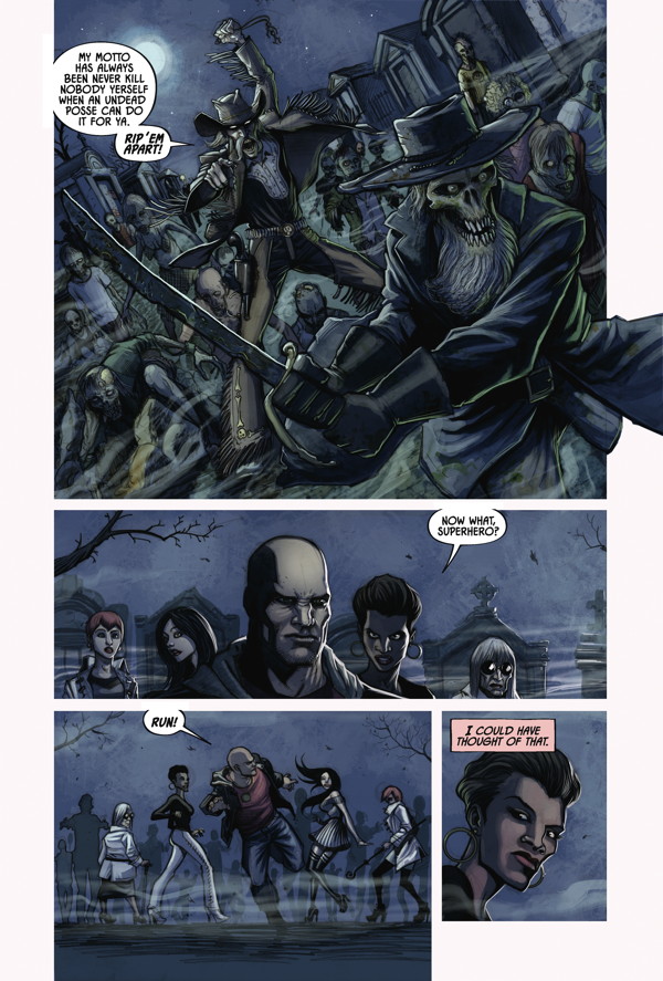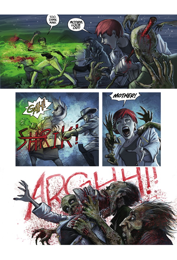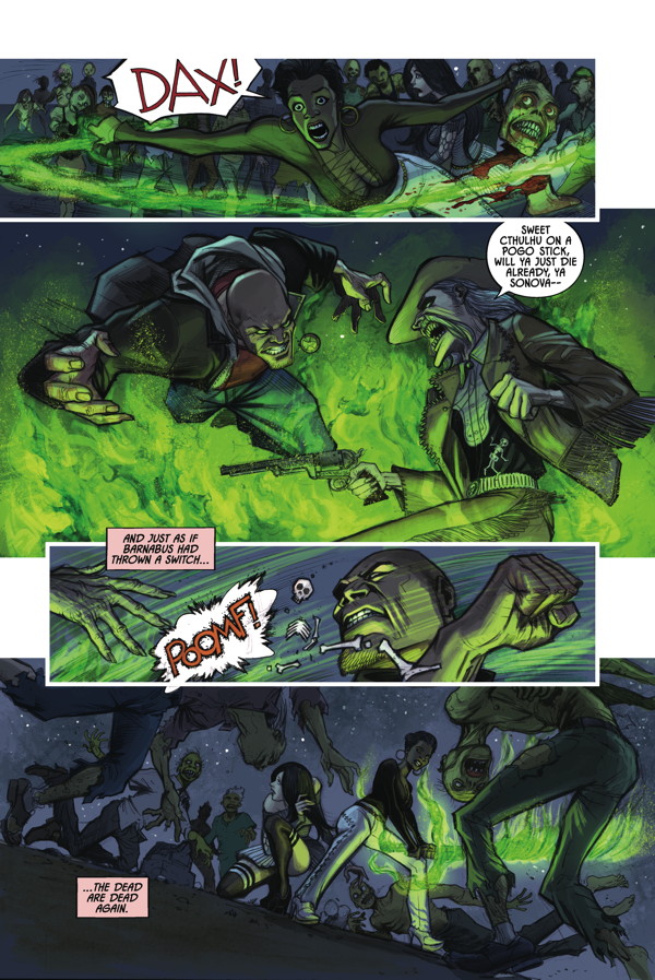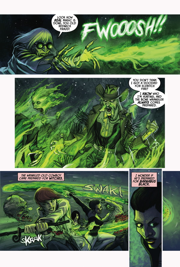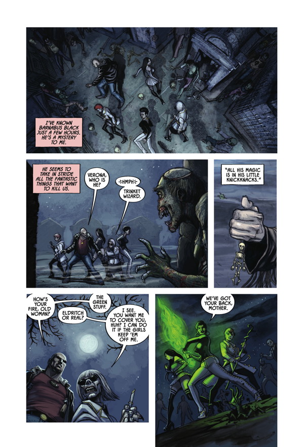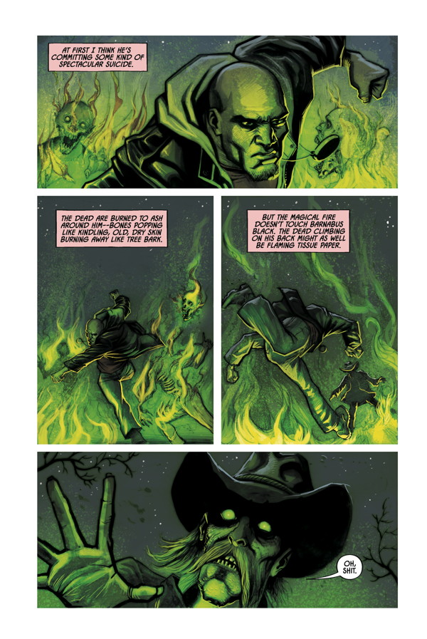 After a bloody zombie battle, a dying witch tells Barnabus Black to cut out her eye. If it’s still in her head when she dies, all her knowledge of the occult will be lost forever. Now for the hard part: Who gets the eye?