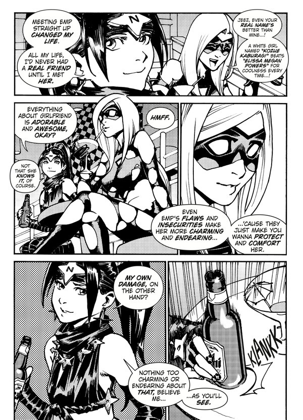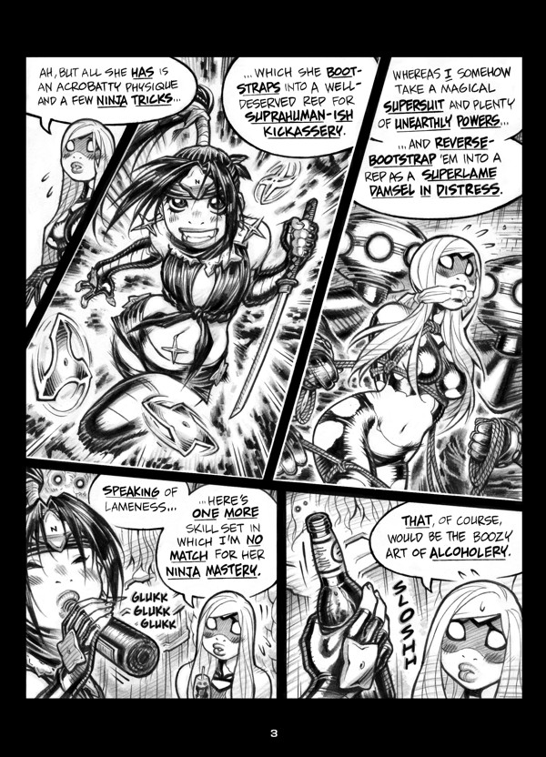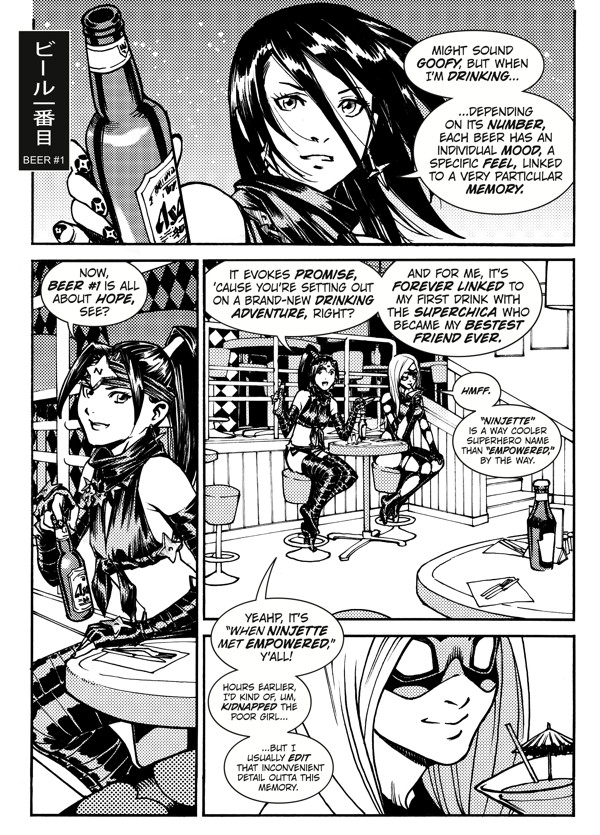 Kick back and have a cold one with hearty-partying Ninjette, Empowered’s Best Friend Forever, as she weaves a boozy yet poignant tale of ninja magic, complete with fighting, flirting, and swing-dancing with the Maidman—not to mention the outwitting of ’Jette’s monstrous thug of a father. Drink up!