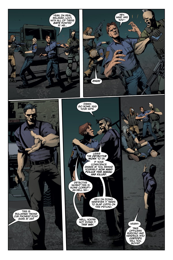 Ruidoso and his partners have Leigh safely in custody, but Lt. Setter and his Dogs of War will stoop to any low to snatch her away. The struggle within the police force erupts into a full-on firefight when X shows up to enforce his own law—and what he does next will shock you!