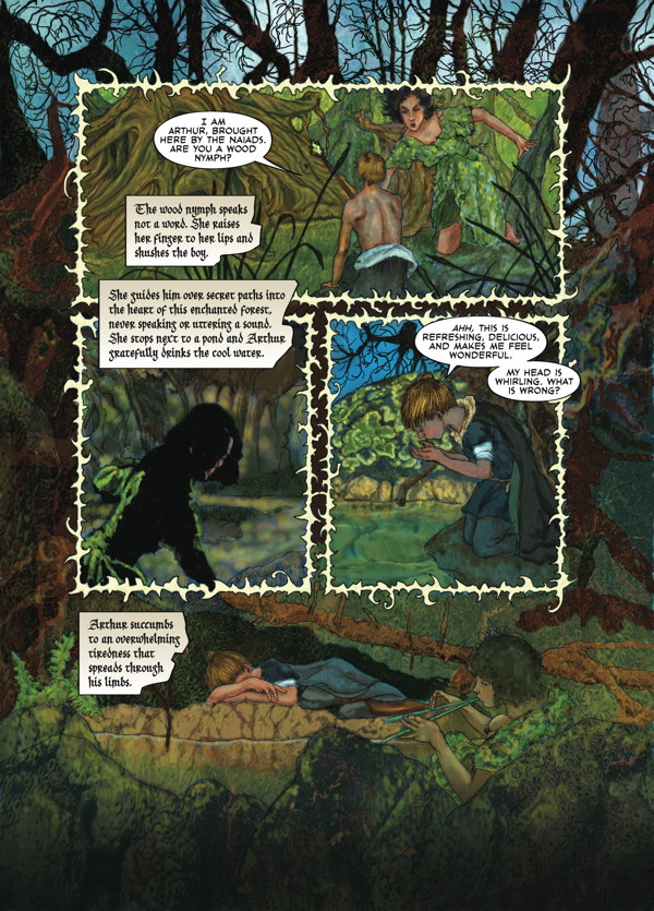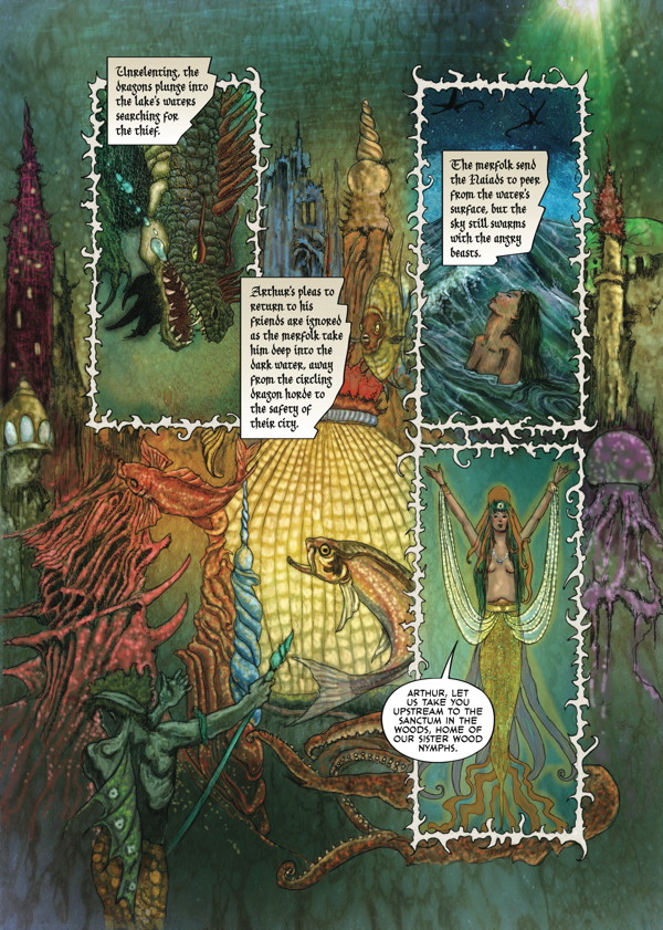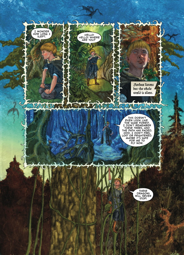 Having narrowly survived their quest and its dangers, our heroes appear to have run out of luck when they find themselves trapped with no avenue of escape from the dragon’s attack! It looks like certain death—but rescue comes in a most unexpected form.