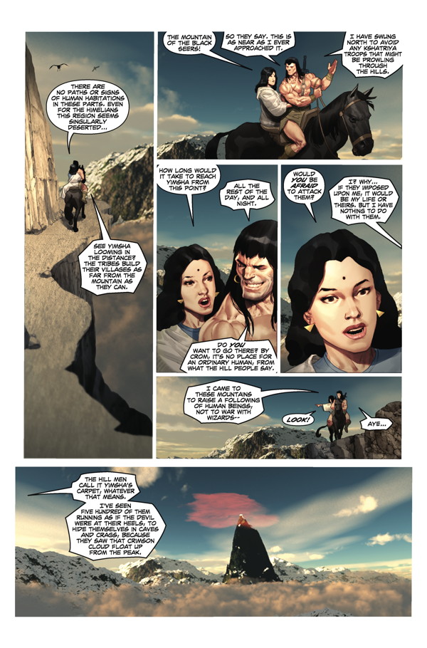 Desperate soldiers, ruthless mercenaries, vengeance-crazed tribesmen, and evil sorcerers—they’re all out for Conan’s blood! After the Black Seers of Yimsha seize Queen Yasmina and withdraw to their mountain fortress, will the Cimmerian be able to reclaim the woman that he himself has taken hostage?