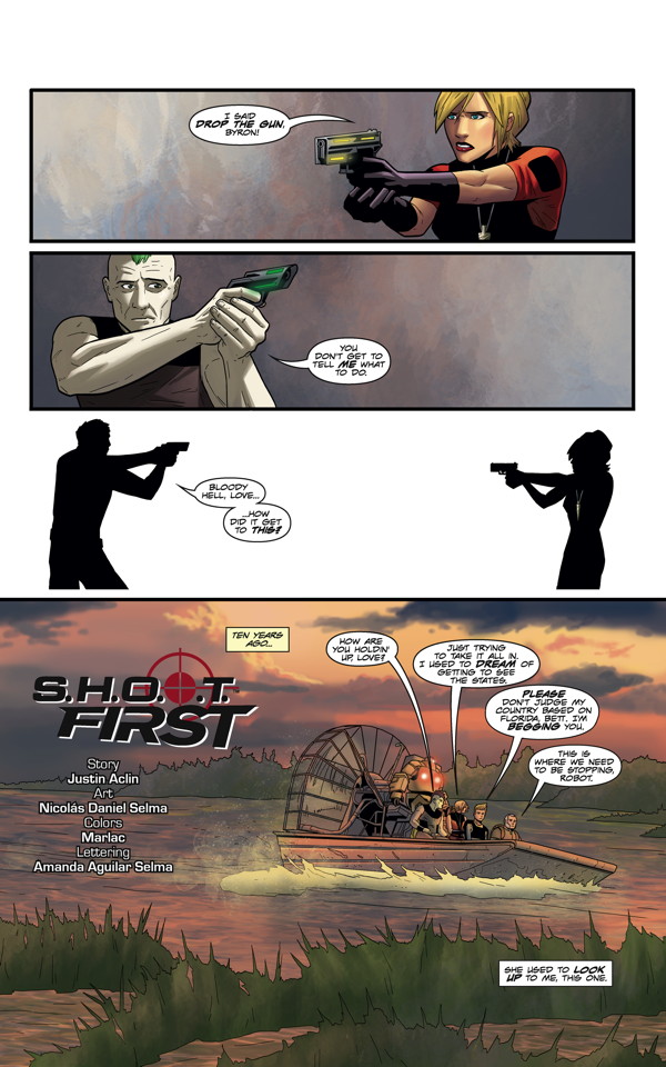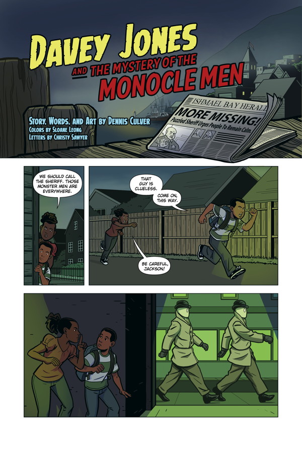 Dennis Culver delivers seaside high jinks in Davey Jones and the Mystery of the Monocle Men, Justin Aclin and Nicolás Daniel Selma’s S.H.O.O.T. First is back in action against secular threats, Kel McDonald takes you on a balloon ride in Across the Channel, and Mike Baron and Steve Rude complete their long-running Nexus story “Into the Past”!