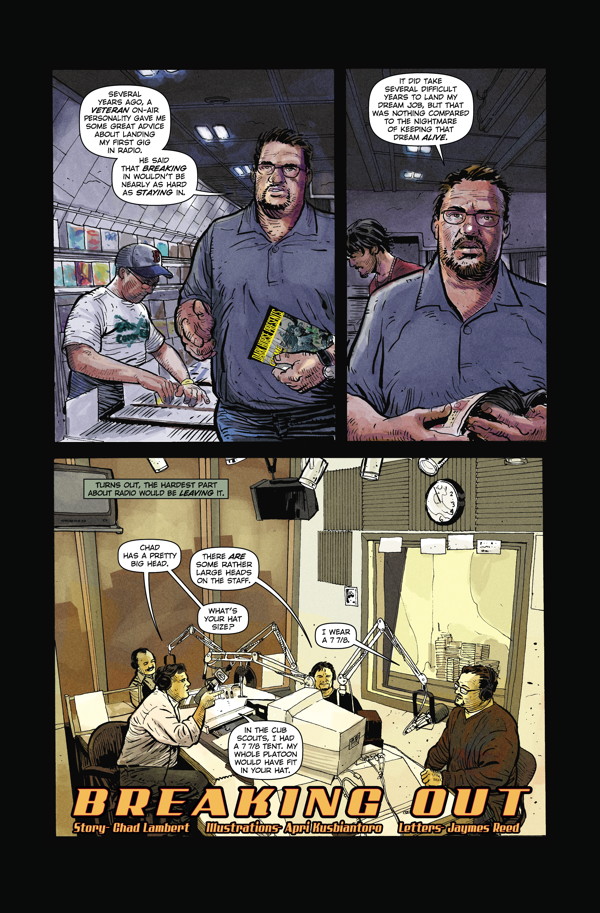 Stan Sakai’s rabbit ronin returns to Dark Horse Presents with a full-color story! Chad Lambert and Apri Kusbiantoro tell another tale of the backstage world behind life in radio! A new chapter in the secret lives of teddy bears is revealed! And long-running serial Integer City comes to its exciting conclusion!