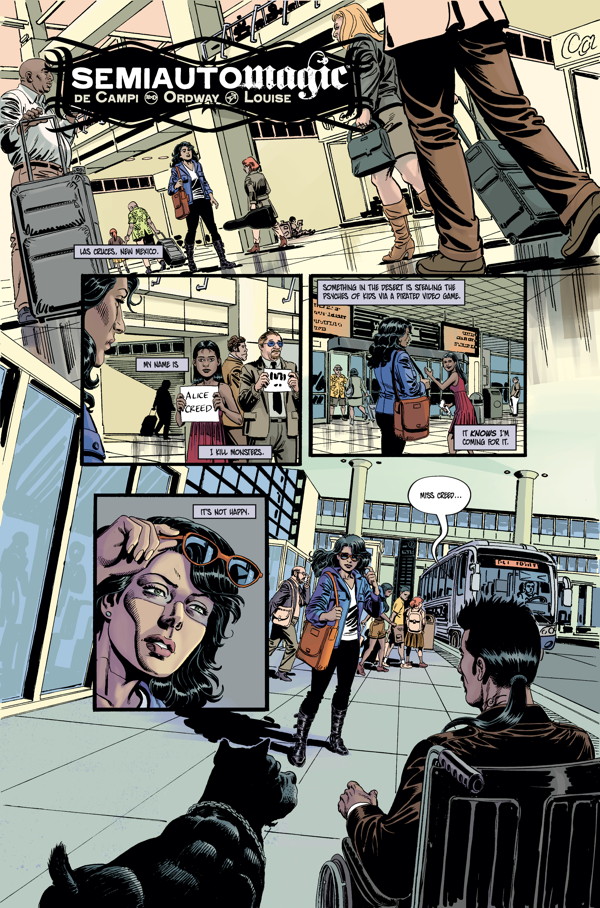 Check out Alex de Campi and Jerry Ordway’s Semiautomagic; Jimmy Palmiotti, Justin Gray, and Andy Kuhn’s Wrestling with Demons; and Peter Tomasi and Keith Champagne’s The Mighty, written by Champagne, with art by Leonard Kirk! Plus, read another Ed Brisson Murder Book story, featuring art from Brian Level!