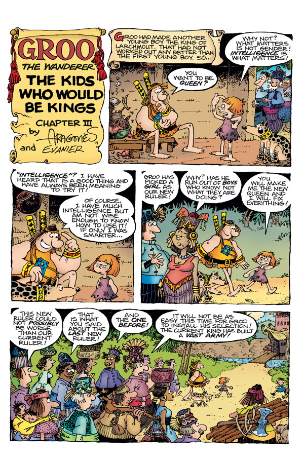Sergio Aragonés’s Groo gets involved in politics, and that’s not good for man, woman, or child in the final chapter of “The Kids Who Would Be Kings”! Plus, Victor Santos’s spymaster Black Kaiser, from Polar: Came from the Cold, joins an espionage team set to infiltrate a dangerous organization . . . but can he trust them? Who will betray them?