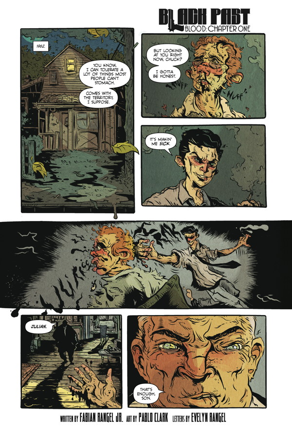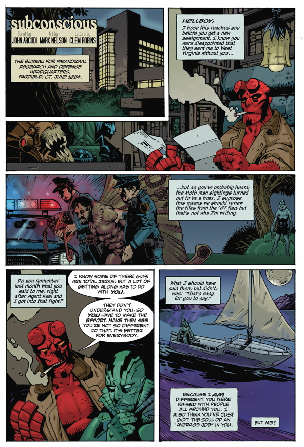 In a dream-oriented story that follows up on the correspondence Hellboy sent Abe Sapien in “The Chained Coffin,” Abe responds to some of Hellboy’s advice in a story by John Arcudi and Mark Nelson. Meet Donny Cates and Eliot Rahal’s The Paybacks—the repo men superheroes really don’t want to meet—in a prologue to their upcoming series! Witchcraft comes to mob land in Fabian Rangel Jr. and Pablo Clark’s Black Past! Survive an exotic sci-fi jungle full of dangers in Rich Woodall and Craig Rousseau’s Kyrra: Alien Jungle Girl!