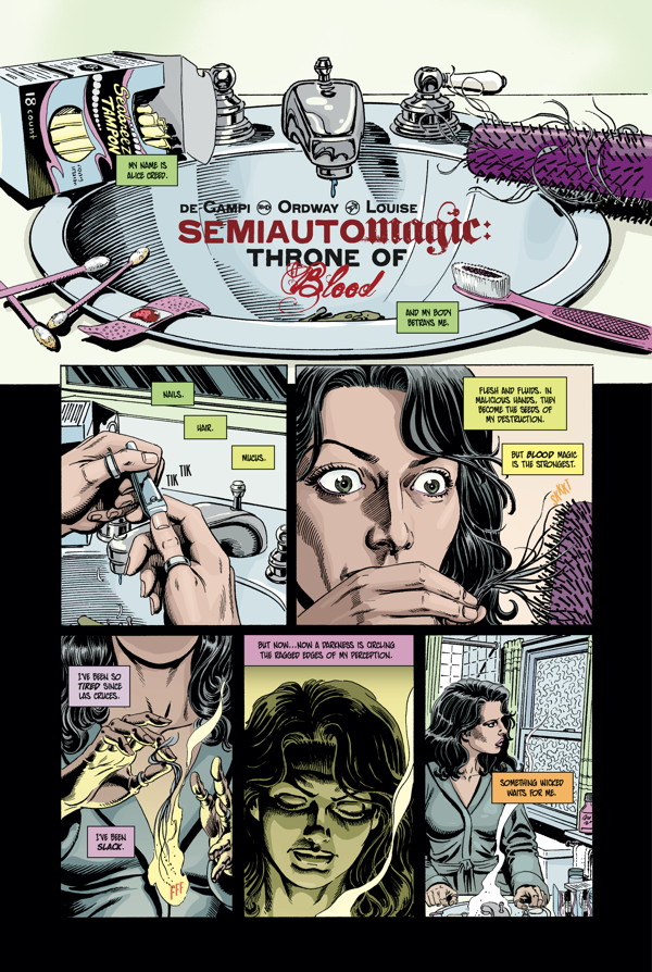 Alex de Campi and Jerry Ordway’s Semiautomagic returns! Occult professor Alice Creed has rules when it comes to magic, and she’s broken them—and breaking mystical rules never goes well!
