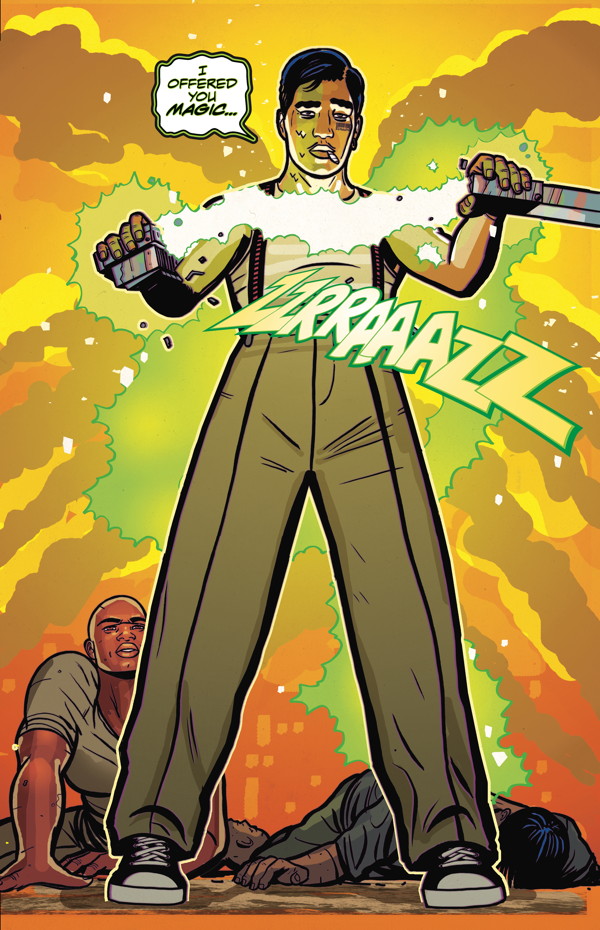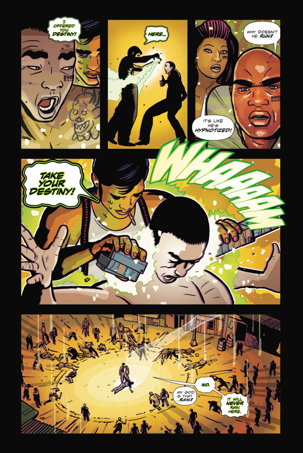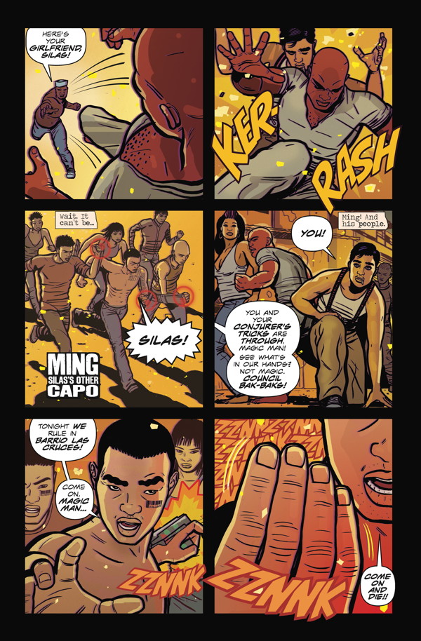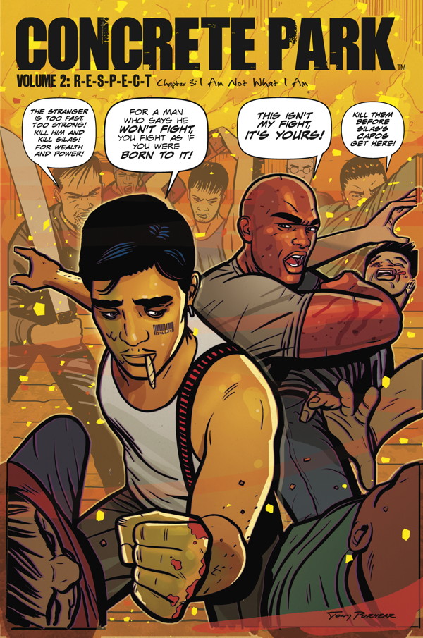 Barrio Las Cruces erupts in violence as Isaac fights side by side with the strange gang leader Silas. Supernatural forces stalk the streets of Scare City, and an aggressive Luca takes her fight to the Potato King. Concrete Park is a dark, sexy sci-fi saga by Tony Puryear (Eraser) and Erika Alexander!